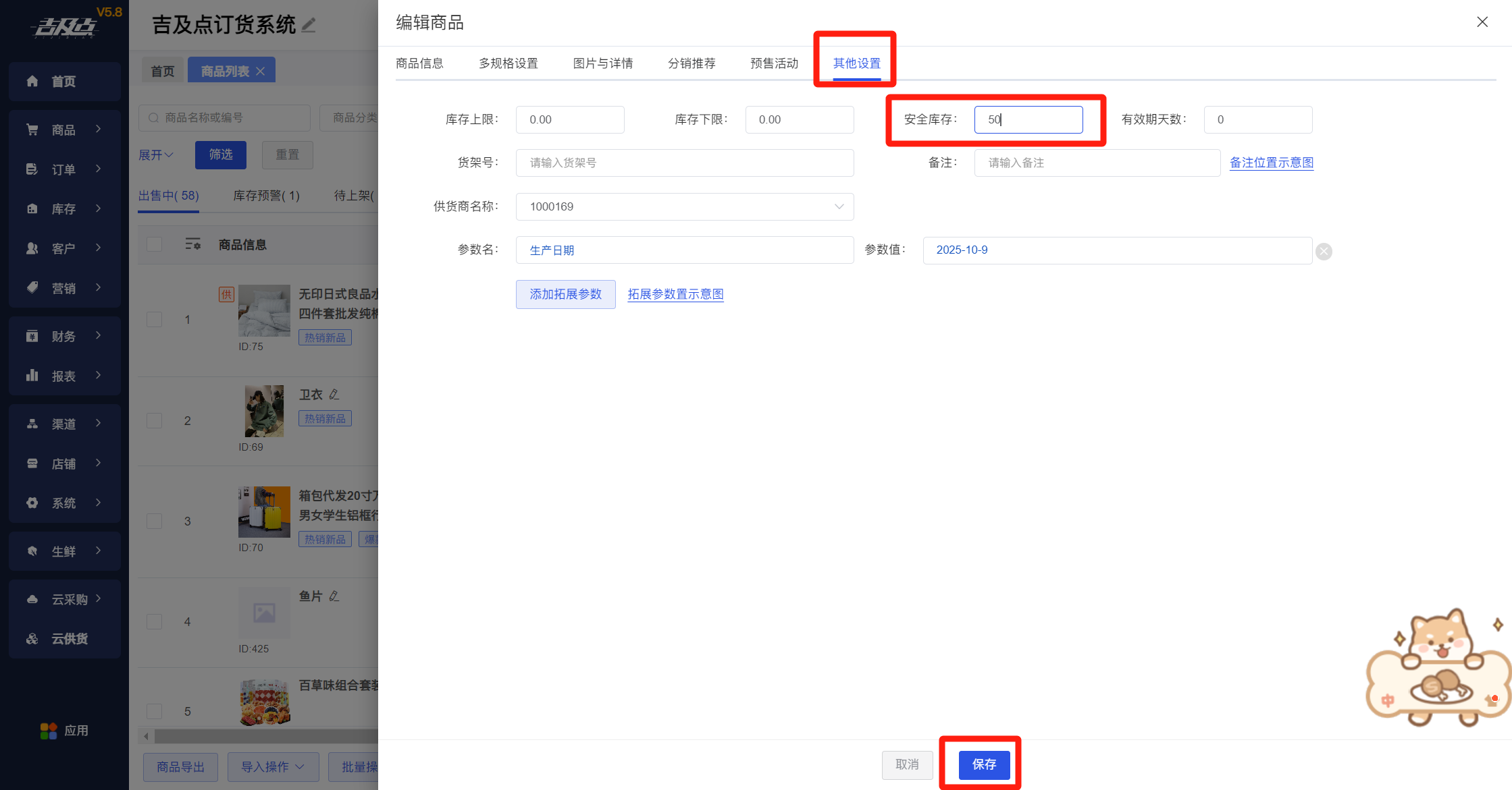 商家可以通过以下步骤在吉及点系统中设置商品库存预警功能: