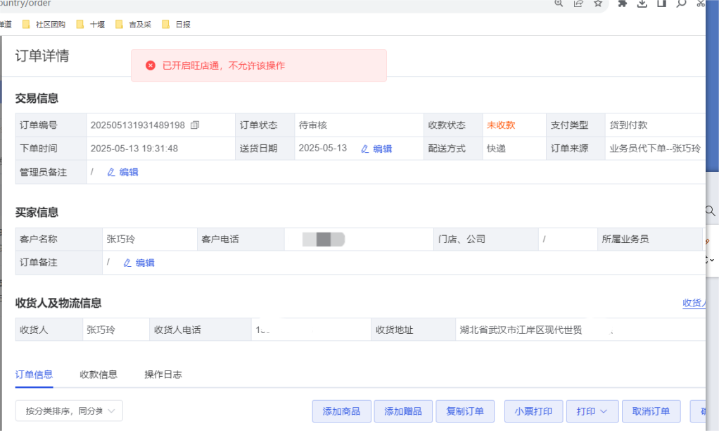 功能介绍:开启旺店通后订单不允许进行编辑、删除操作。