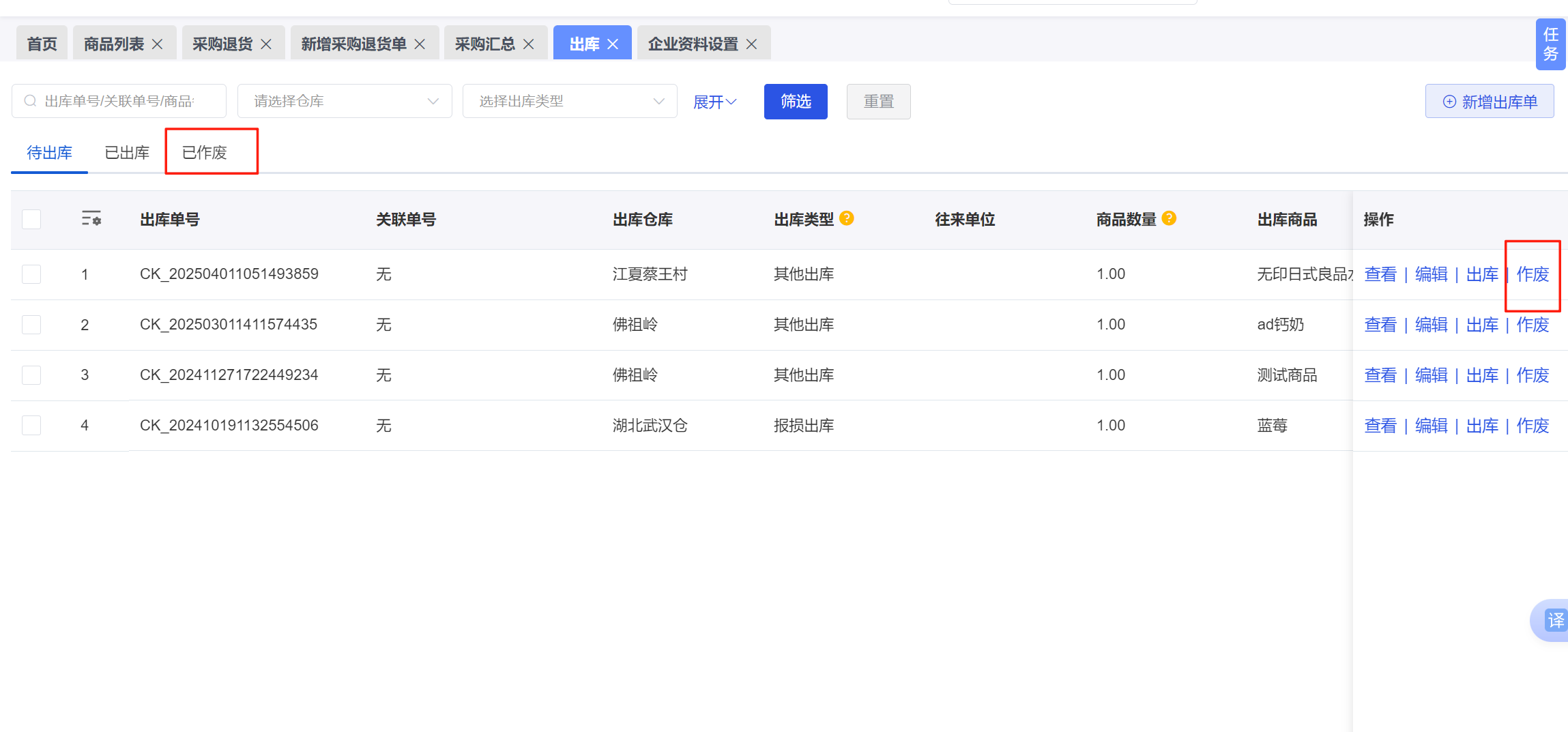 7.1出库单列表点击单号支持快捷跳转对应模块查看单据详情。