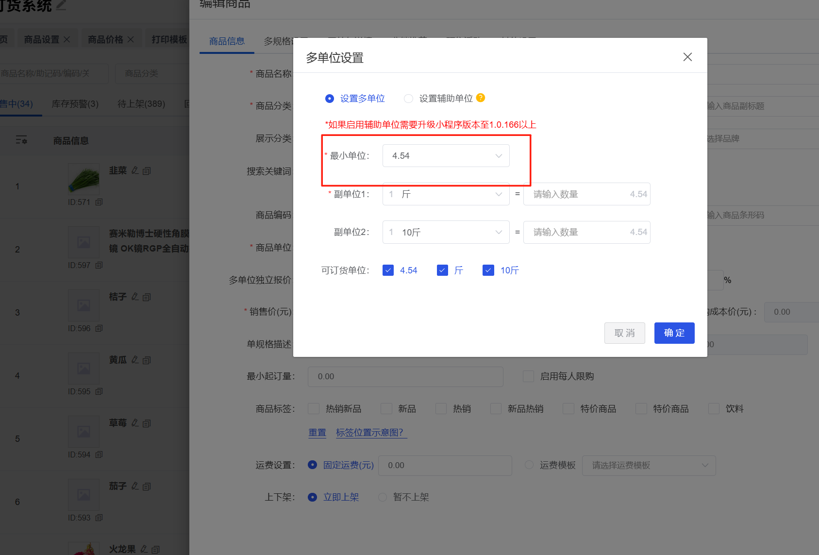 功能介绍:当商品单位中最小单位存在数字时,小程序展示该商品不显示换算比例。
