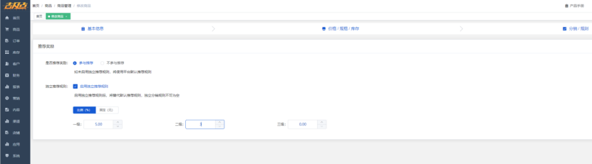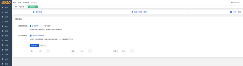 单个商品返佣:通过修改商品,对单个商品返佣。
