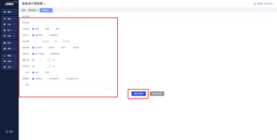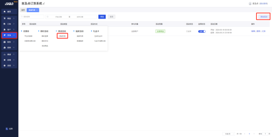在吉及点订货系统的后台,左侧主菜单栏找到营销,选择满减列表,点击右上角的添加活动,填写好活动名称、活动时间等内容,然后点击保存即可。